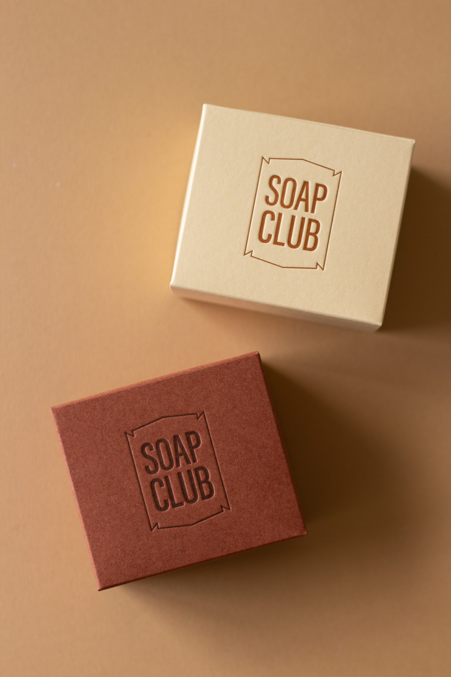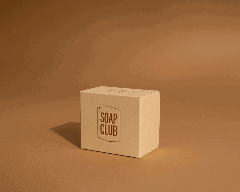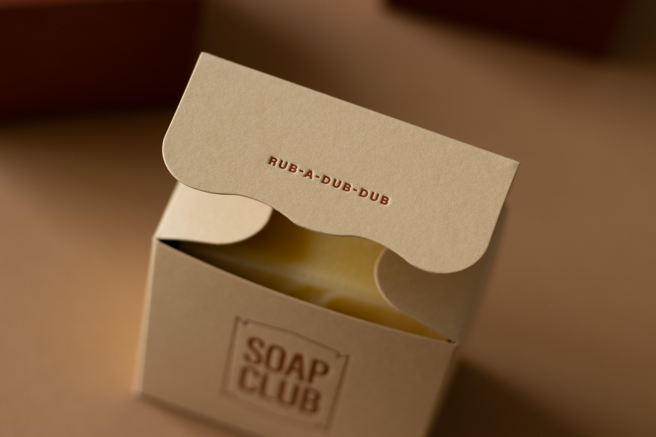 We created a bespoke box for Soap Club which folds up without glue. A secret message is hidden on the flap, revealed when you’re ready for suds.